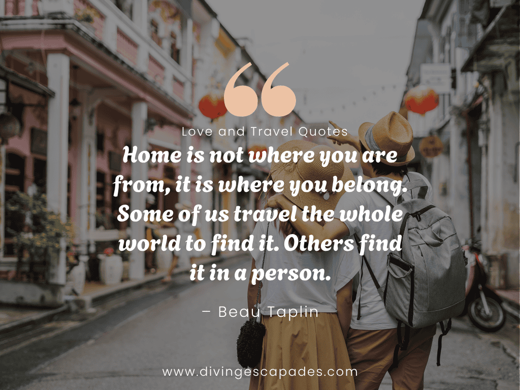- “Home is not where you are from, it is where you belong. Some of us travel the whole world to find it. Others find it in a person.” – Beau Taplin